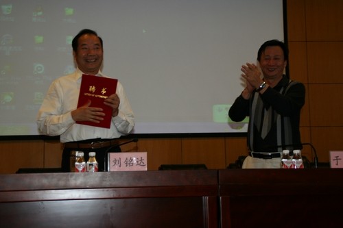为迎接我校60华诞,交流学术思想、活跃学术研究,2012年6月12日、13日下午,我院邀请我国著名财政学专家、我校财政学客座教授,中共十六大代表、全国十届人大代表、广西壮族自治区财政厅前厅长刘铭达教授作了2场学术报告。讲座由学院副院长蔡德发教授主持,讲座开始之前,副校长于树彬教授为刘铭达教授颁发了客座教授聘书。