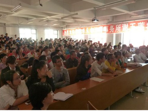 蔡德发教授对本次讲座做了精彩的总结。他说,明天就是我校60华诞,在这特殊的日子,特意向在场的大学生、研究生表达谢意。是你们给了我们教师桃李满天下的殊荣。进校时,你们对课本上的一字一句毫不怀疑,渐渐地你们开始了独立思考,而从这时起就是老师开始向学生学习了。多亏有了你们,自己才有如此丰富多彩的教师生涯!