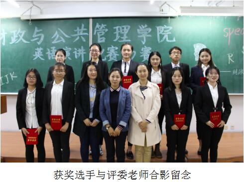 院团委书记李陈亚老师的精心策划与指导下,此次演讲比赛圆满成功。经过激烈的角逐,来自16级行政管理二班的张志玥、16级劳动与社会保障一班于信洋荣获财政与公共管理学院英语演讲比赛一等奖,15级行政管理一班姚春淼、15级劳动与社会保障一班王青松、16级税收学二班黄硕荣获二等奖,17级劳动与社会保障二班苏凡洋、16级税收学二班赵盼盼、16级劳动与社会保障二班车汶峰、16级税收学一班别宜泽、17级行政管理一班白珊荣获三等奖。最后恭喜获得一、二等奖的五位同学成功晋级学校复赛。