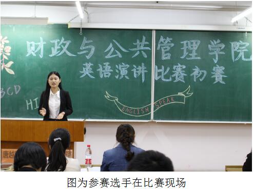 为响应学校号召,激发学生学习外语的热情,创造良好的外语学习环境,展示学生外语演讲能力,财政与公共管理学院于9月26日下午在主楼0616教室举办了 “财政与公共管理学院英语演讲比赛初赛”。