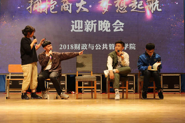 迎新暨表彰大会结束后开始了迎新文艺晚会。本次晚会在院团委书记李陈亚老师精心指导和学生会认真准备下,呈现了一场视觉和听觉的饕餮盛宴。活力四射的开场舞拉开了晚会的帷幕,学院师生齐诵《拥抱商大》、民舞《千年游》带给大家无比震撼;小品《绝地代言》、白丁乐队、歌曲串烧、韩舞、话剧和走秀等节目同样展示了18级新生傲人风采,展现出青春的朝气与活力。经济学院特别出演了心理话剧《己所不欲,勿施于人》给观众留下深刻印象。整场晚会诸多节目贴近生活、反映当下,号召广大学子珍惜韶华、不负时光,向同学们传递了昂扬向上、拼搏进取的青春正能量。