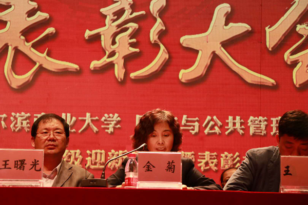 最后,学院党委书记金菊教授对大会进行了总结,鼓励大家认真学习专业知识,练就过硬本领,开创美好未来。一是树立小目标,千万不要好高骛远,根据自身条件设定目标,并用心做好每一件小事。二是永远保持好奇心,讲究方法,不间断地学习,在大学的良好人文环境中感受,求证,创新。三是要勇于担当,磨练意志,承担起对父母、对家庭、对社会、对民族的责任,成长成才。最后金书记祝愿新同学在哈尔滨商业大学度过美好的青春时光,在财政学院放飞人生梦想。