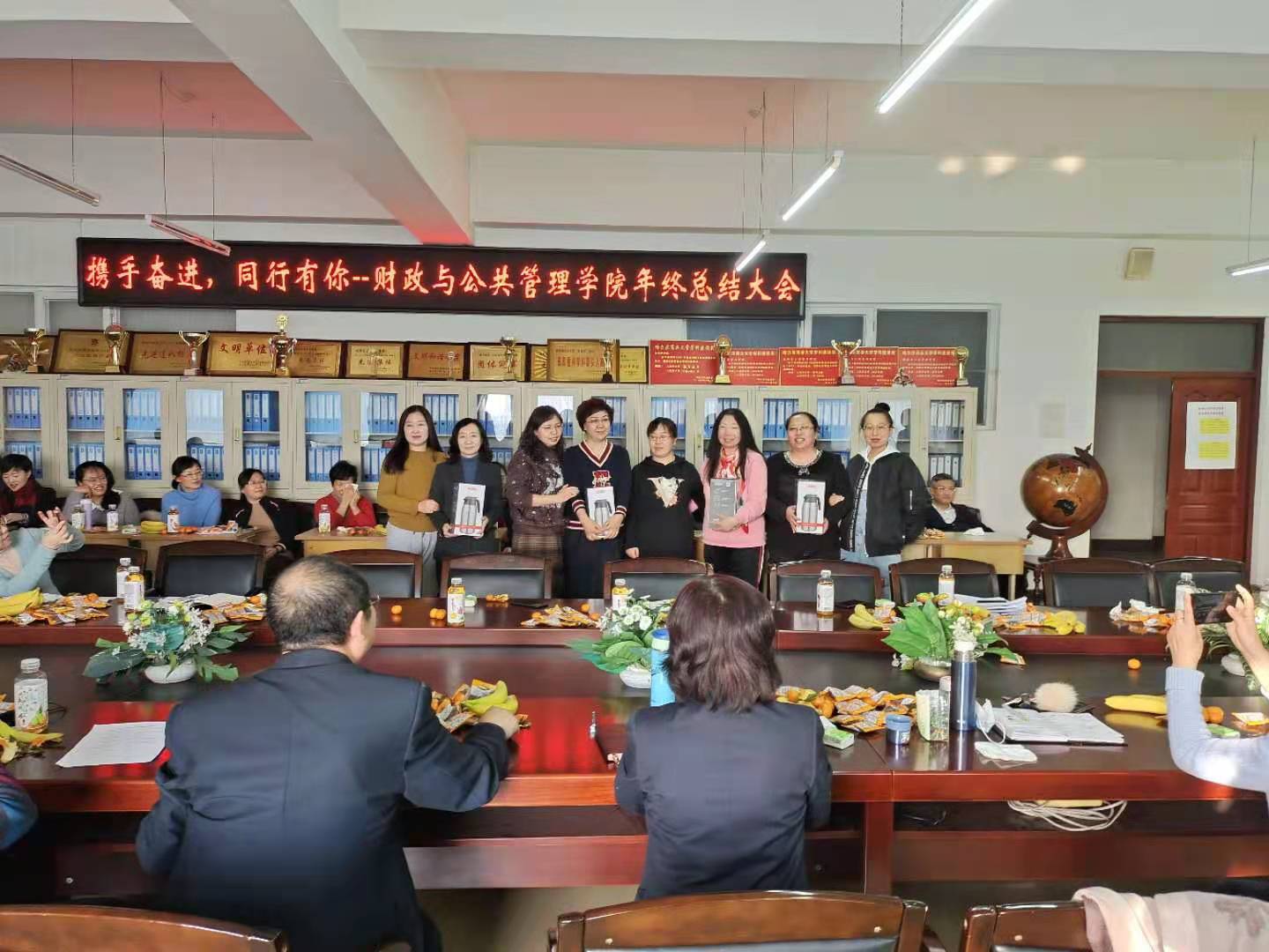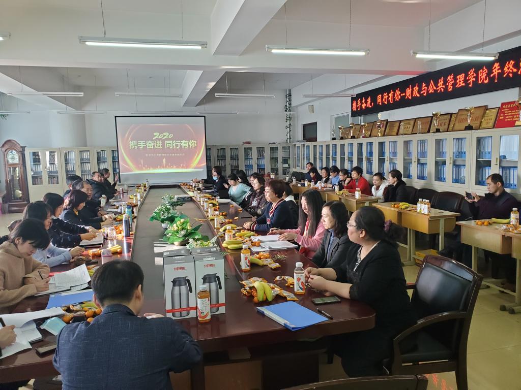 2020年12月31日下午,财政与公共管理学院工会在轻松、活泼的氛围中于主楼0608会议室组织开展了一场别开生面的2020年度年终总结大会。会议由学院党委书记金菊主持,学院所有领导及全体教师参加了会议。