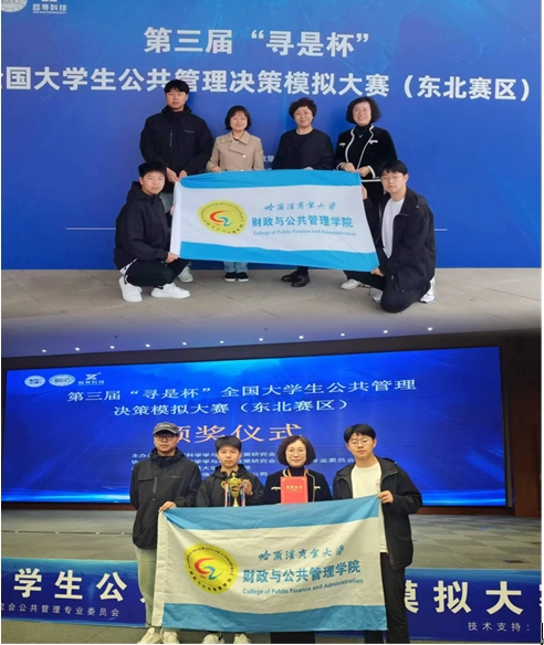 我院高度重视此次竞赛,由财税研究中心王炜主任带队,刘萍教授、时丹丹教授作为指导教师,2023级公共管理专业谢逸飞、张国旺和2022级行政管理专业孔嘉俊三位同学组成参赛队,首次代表哈尔滨商业大学参加第三届“寻是杯”东北赛区大学生公共管理决策模拟大赛。在沙盘模拟对决中,三位同学沉着迎战,全身心投入到紧张有序的比赛中,以出色的竞技水平和团队合作精神,最终在众多优秀队伍中脱颖而出,荣获二等奖的佳绩。