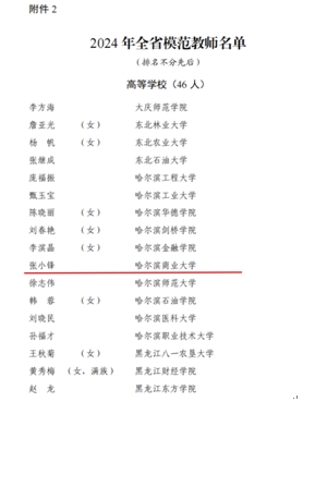 我院张小锋教授荣获2024年全省模范教师称号。自2011年8月参加工作以来,张小锋老师坚持以习近平新时代中国特色社会主义思想为指导,全面贯彻落实党的二十大和二十届二中、三中全会精神,大力弘扬教育家精神,教书育人、培根铸魂,始终站在教学一线,兢兢业业,深受同行认可、家长信任、学生爱戴。为经济学博士,博士后,博士生导师,黑龙江省青年教学名师,注册会计师。在教学科研领域深耕10余载,取得较为突出的教学科研成果。