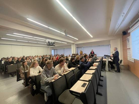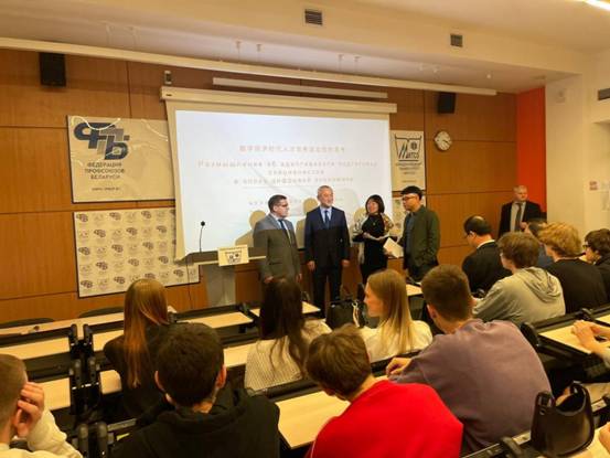 在白俄罗斯“MITSO”国际大学访问期间不仅就开展合作进行洽谈,受校方诚邀赵宇新教授为该校师生作了关于“数字经济时代人才培养适应性思考”的讲座。重点围绕数字经济的内涵及其发展现状、数字经济的历史演进、数字技术发展与人工智能革命、中国数字经济发展现状、数字经济时代人才培养的机遇与挑战、数字经济时代人才培养适应性问题解决路径等问题讲解和阐述,交流的学术内容和观点引发了在场师生的浓厚兴趣。讲座之后,在场师生还就人才培养过程中如何处理好人与AI之间关系问题与赵宇新教授进行了交流和讨论,赵宇新教授从AI的工具属性、AI技术革命引发人类生产生活方式的变革趋势,以及未来人类与AI的共生关系等方面阐述了自己的见解,此次交流取得了良好效果。