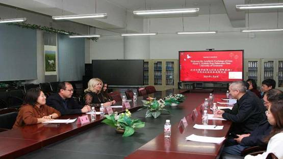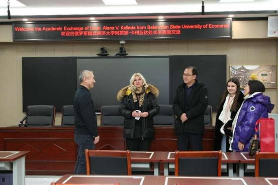 赵宇新书记代表学院欢迎阿莱娜·卡利亚达处长的来访