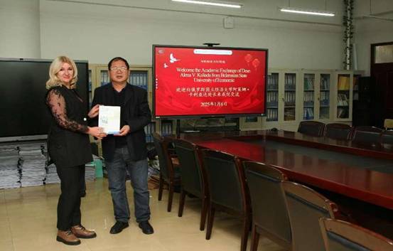 2025年1月6日,白俄罗斯国立经济大学国际合作处处长阿莱娜·卡利亚达受邀来我院交流访问。国际合作交流处处长金向阳、财政与公共管理学院书记赵宇新、院长景宏军、副院长刘西涛、财税研究中心副主任王炜、财政学学科带头人王曙光教授、行政管理教研室主任洪富艳、外语学院俄语教研室主任王淼老师等参加交流会。