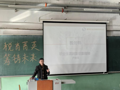 黑龙江省注册税务师协会行业党委副书记、副会长兼秘书长尹殿奎以税务师——职业生涯的重要里程碑为题,系统阐释了税务师的职业价值与发展路径。他强调随着税收法治化进程加速,精通税法的专业人才需求持续增长,税务师已成为财经学子实现高质量就业的重要选择。秘书长还从备考策略、能力要求等角度为学子指明方向,为学科专业建设提供了重要参考——应着力培养懂理论、通实务、高素质的复合型人才,强化课程体系与职业资格的有机衔接。