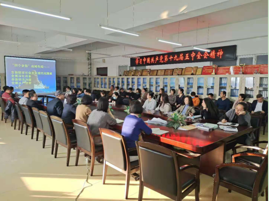会上,全体教师集中原文学习《中国共产党第十九届中央委员会第五次全体会议公报》。李陈亚书记主讲《党的十九届五中全会精神解读》,重点围绕会议主要议程,党的十九届四中全会以来中央政治局的工作,一年来以习近平同志为核心的党中央团结带领全党全国各族人民砥砺前行的奋斗历程,决胜全面建成小康社会取得的决定性成就,深刻认识和把握我国发展环境面临的深刻复杂变化,到二〇三五年基本实现社会主义现代化的远景目标,“十四五”时期经济社会发展的指导思想和必须遵循的原则,“十四五”时期经济社会发展的主要目标,为实现“十四五”规划和二〇三五年远景目标而要抓好的重点工作这九个方面,对党的十九届五中全会精神进行深入浅出的讲解。
